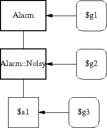 Alarm::Noisy has two class observers ($g1 and $g2)